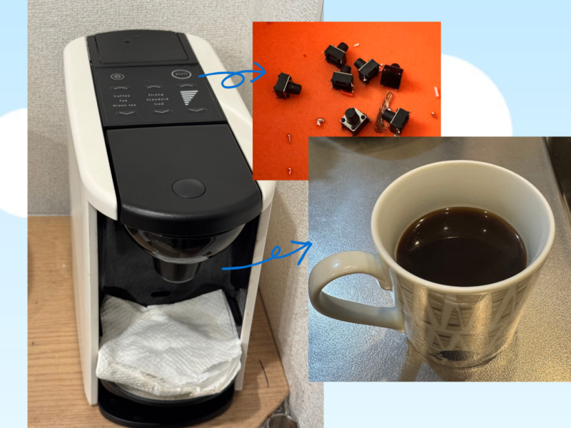 1年位前からすべてのボタンが接触不良を起こしてました。何回も押したり、長押ししたりすると反応するのですが、地味にストレスなので、そろそろ直そうと思ったわけです。コーヒーメーカーをバラバラにして、基盤 …