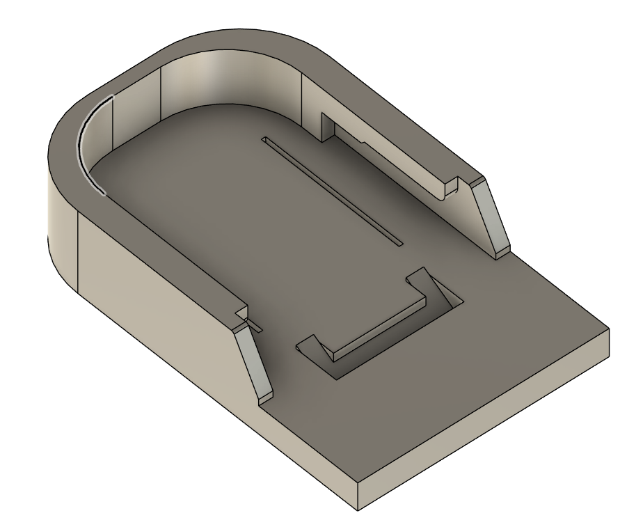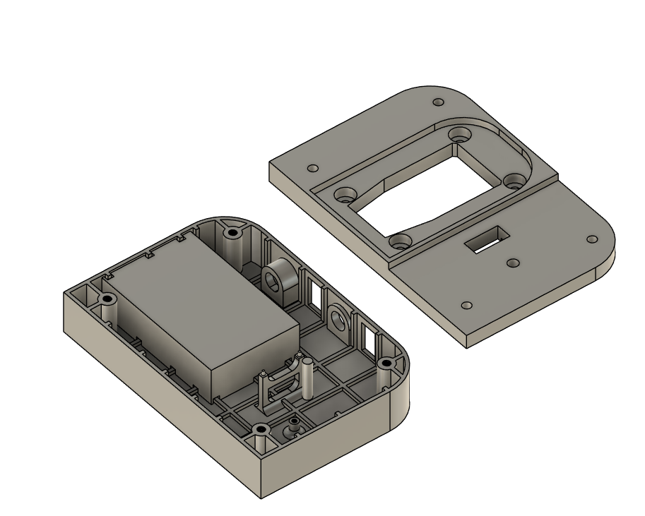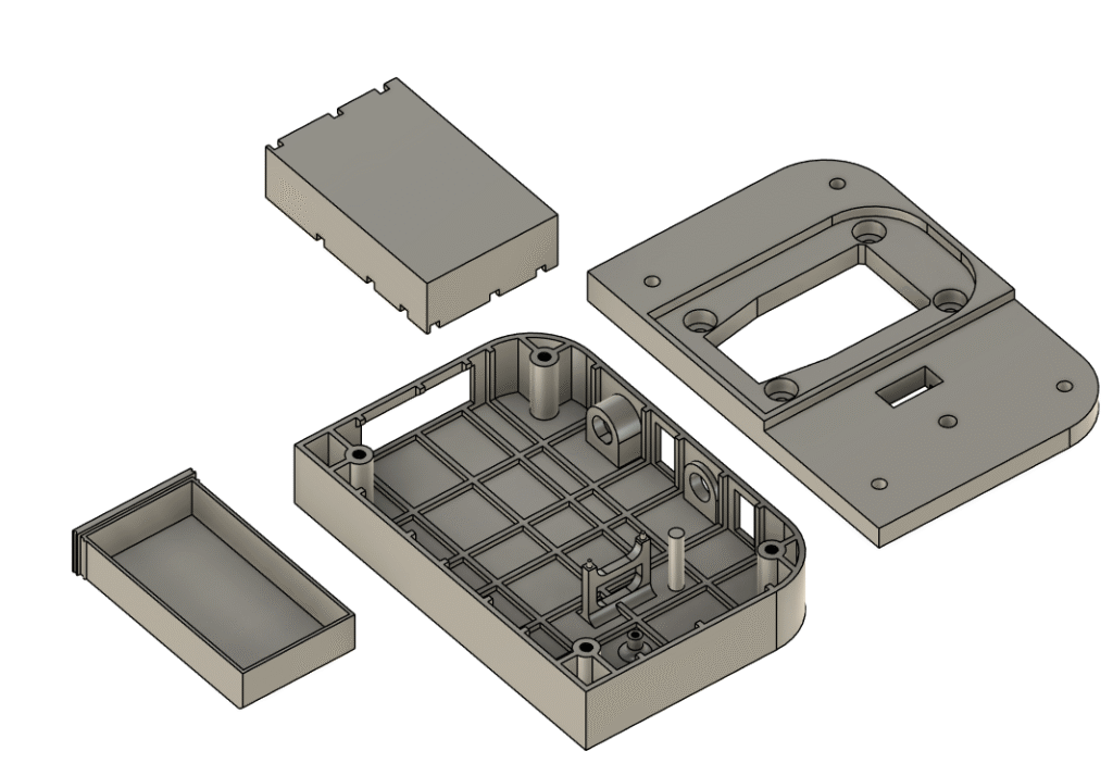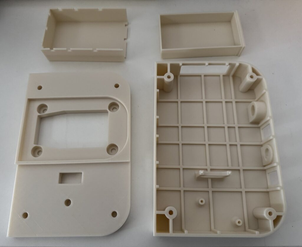 綺麗に造形できました。また材質は遅燃性のある物にしています。補強用のエンボスが多いですが、構造上弱い所と引き出し用のレールをあとから追加しているので、この形になっています。あとから見ると、引き出し開口部の上部分とかは、貧弱な設計になっているので改良の余地がありますね。上部に取り付けるパーツが蓋になるので、削除しても機能するはずです。